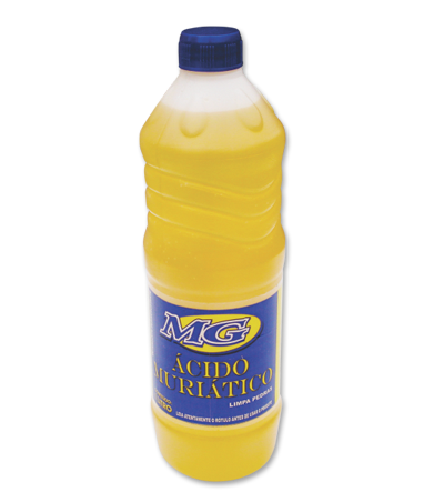 Limpeza de ardósia, cimentos, alvenaria em geral, fachadas de concreto aparente, pastilhas e pedras: Utilize sempre um pano. Se a sujeira for menos intensa, dilua o produto em um balde e aplique-o. Para limpeza de sanitários: despeje 100 mL de ÁCIDO MURIÁTICO MG e espere o produto agir por 10 minutos, em seguida passe a vassourinha e enxágüe.